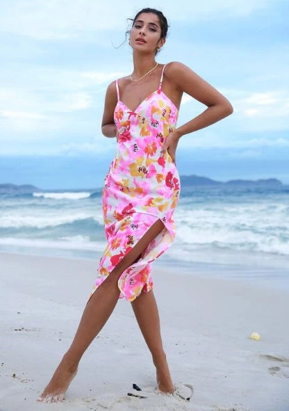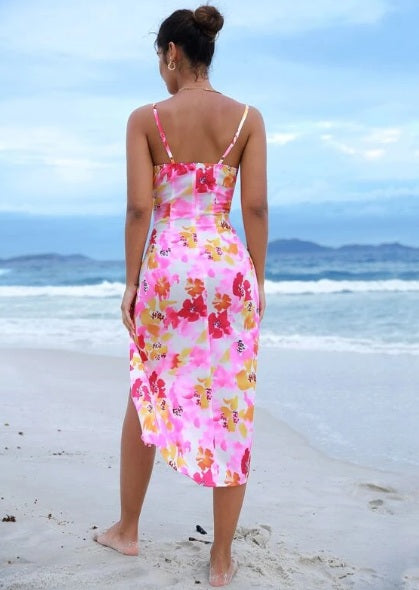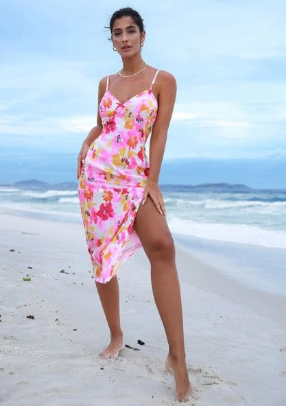 Float through sunlit days in the Blush Drift dress — a soft cascade of watercolor florals in dreamy pinks, corals, and golden tones. Designed to hug the body with effortless grace, its sweetheart neckline and side slit bring just the right touch of romance and movement. From beach walks to summer soirées, this piece captures the essence of feminine ease and sensual elegance.